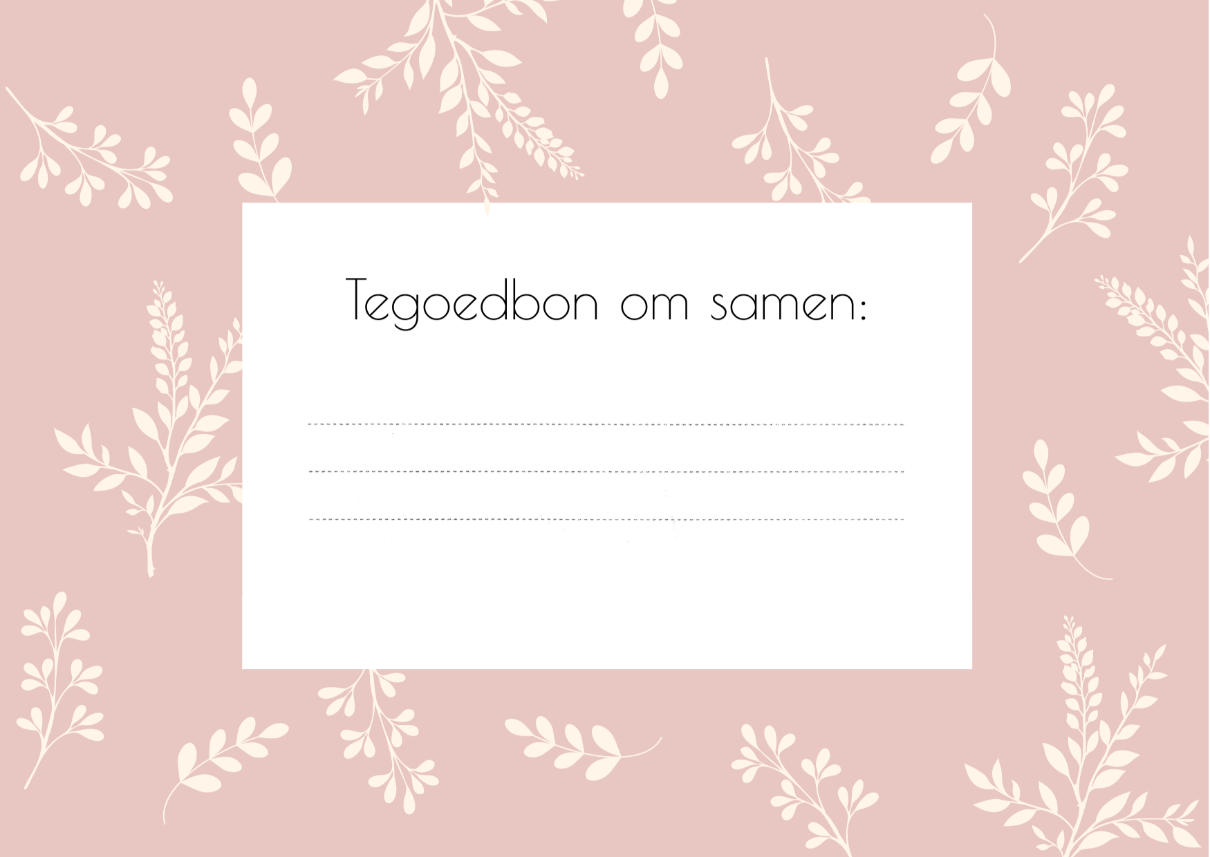 Tegoedbon om samen - Roze met witte takjes